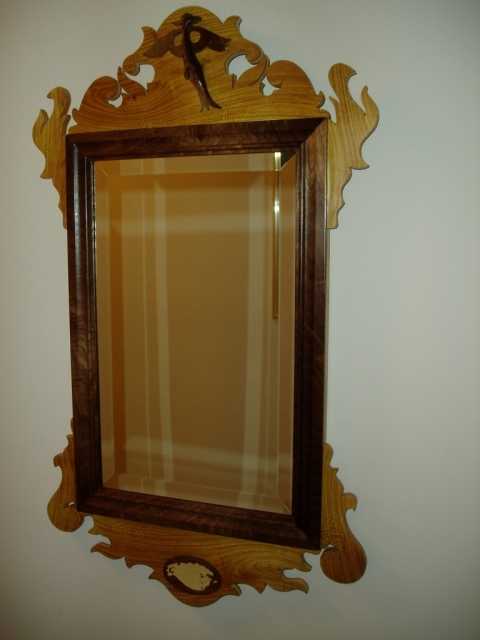 and a fanciful Phoenix bird in walnut at the top. From an old design seen in England.