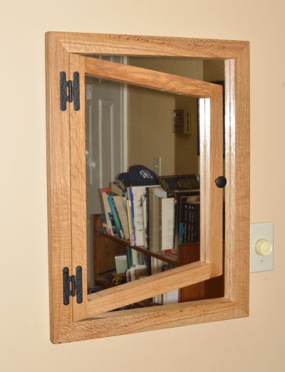 Garry oak, with wrought iron hinges and a small knob and will be kept indoors.