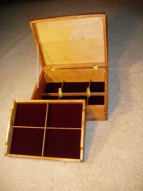 in arbutus with removable tray and two ring posts. Velvet lining.