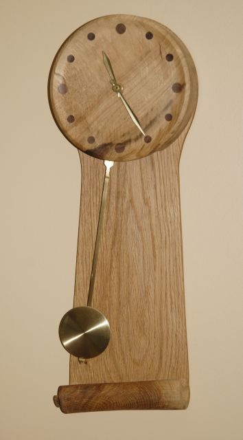 made of Garry Oak, with a turned scroll attached to the oak back board.