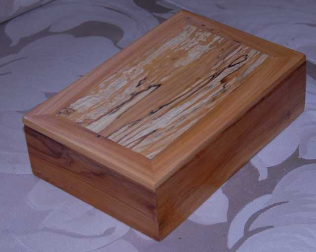 Small box of Pacific Yew with spalted alder top.